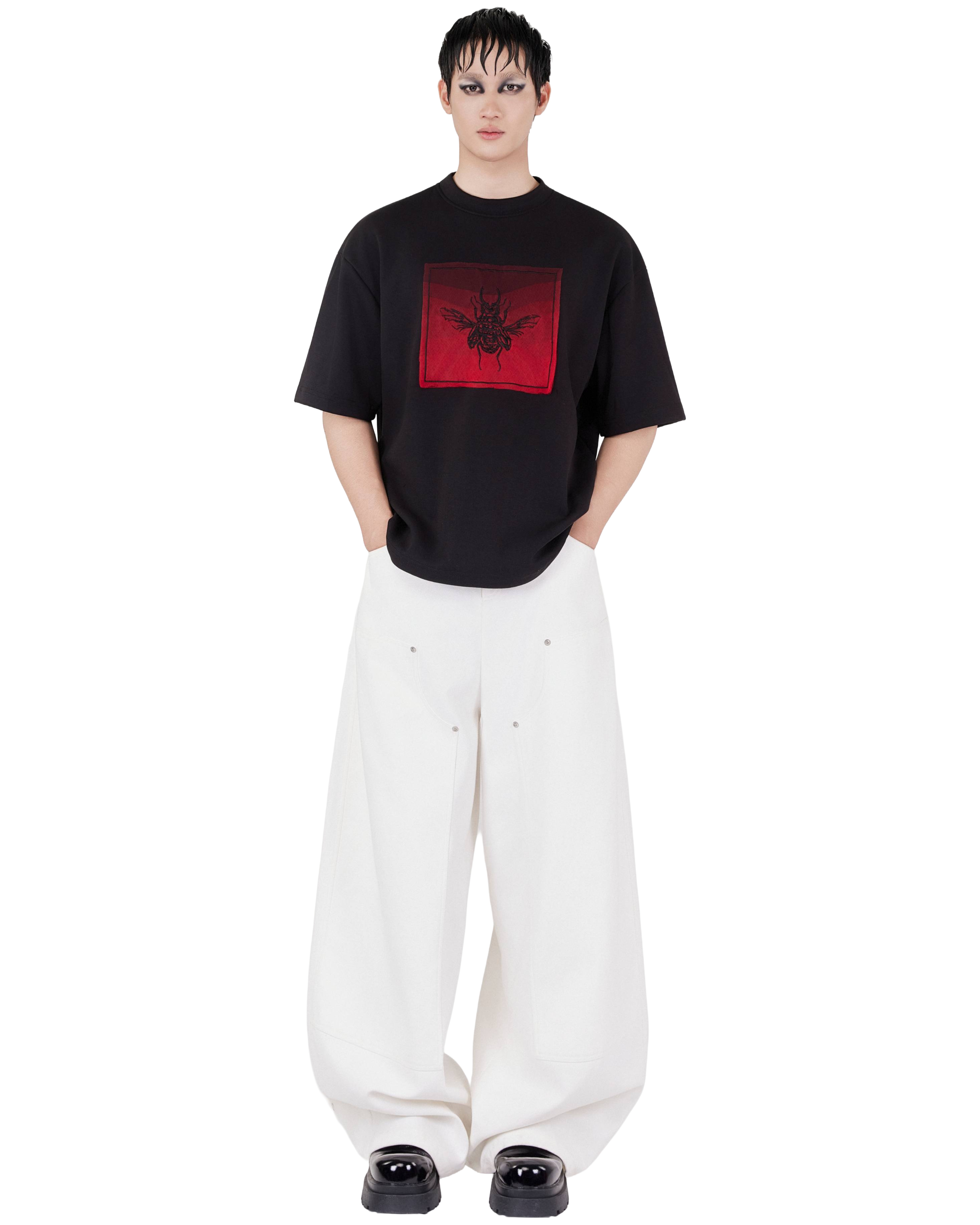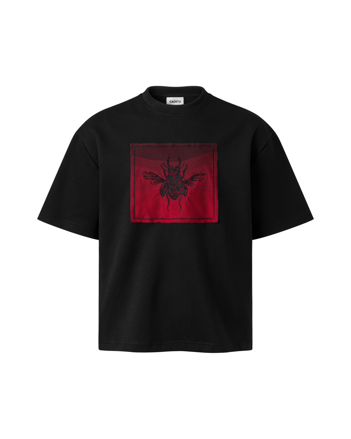 - Bamboo cotton 280 GSM, Beetle motif embroidered in tatami technique at the center, framed with an ombre gradient square.
