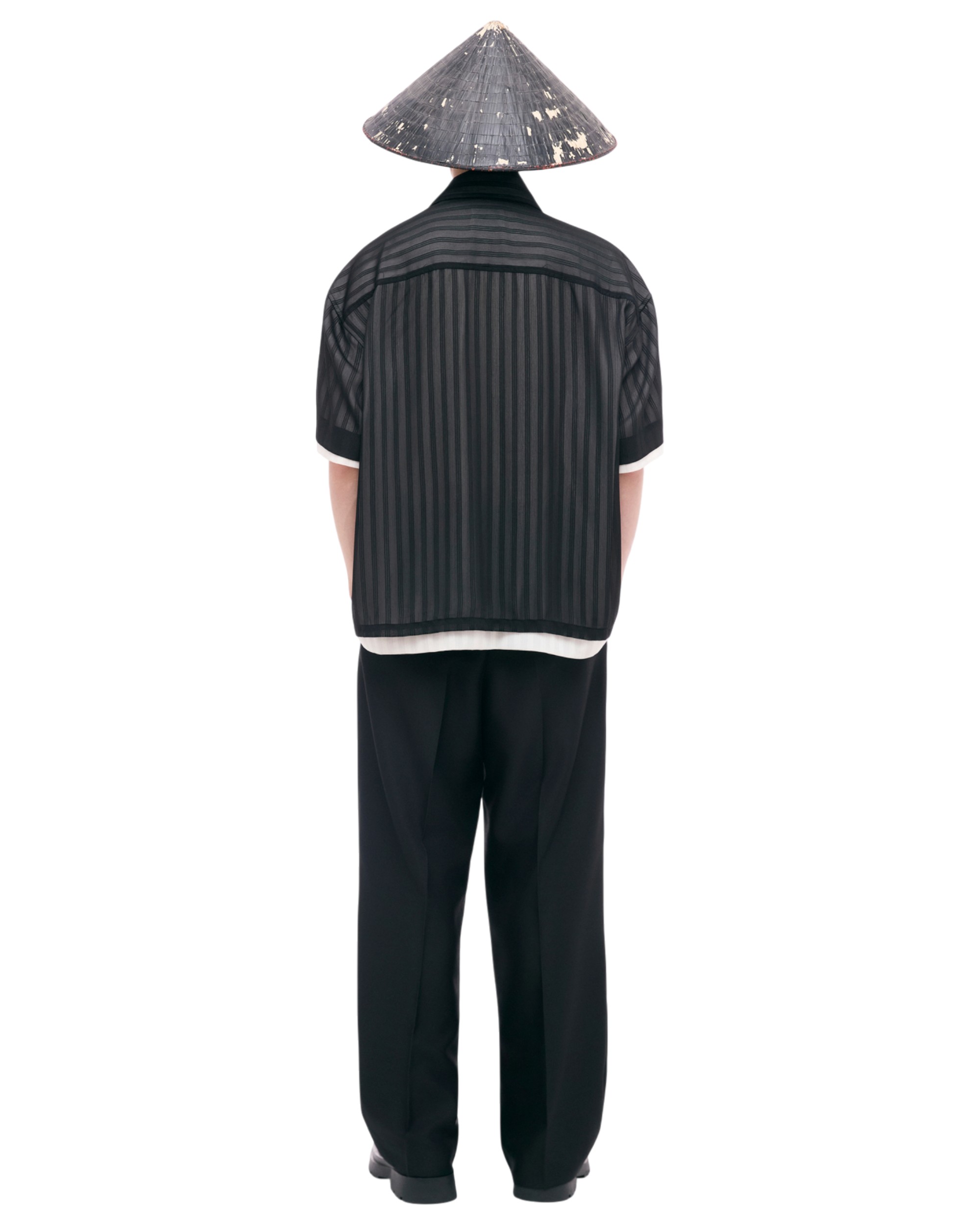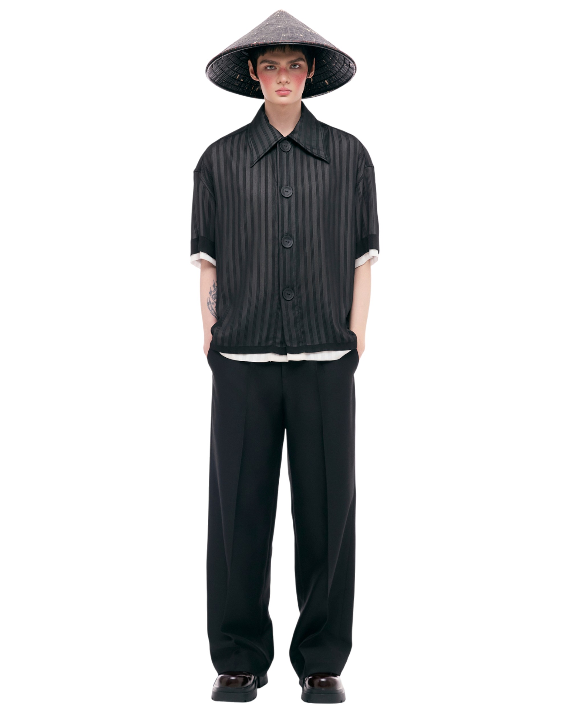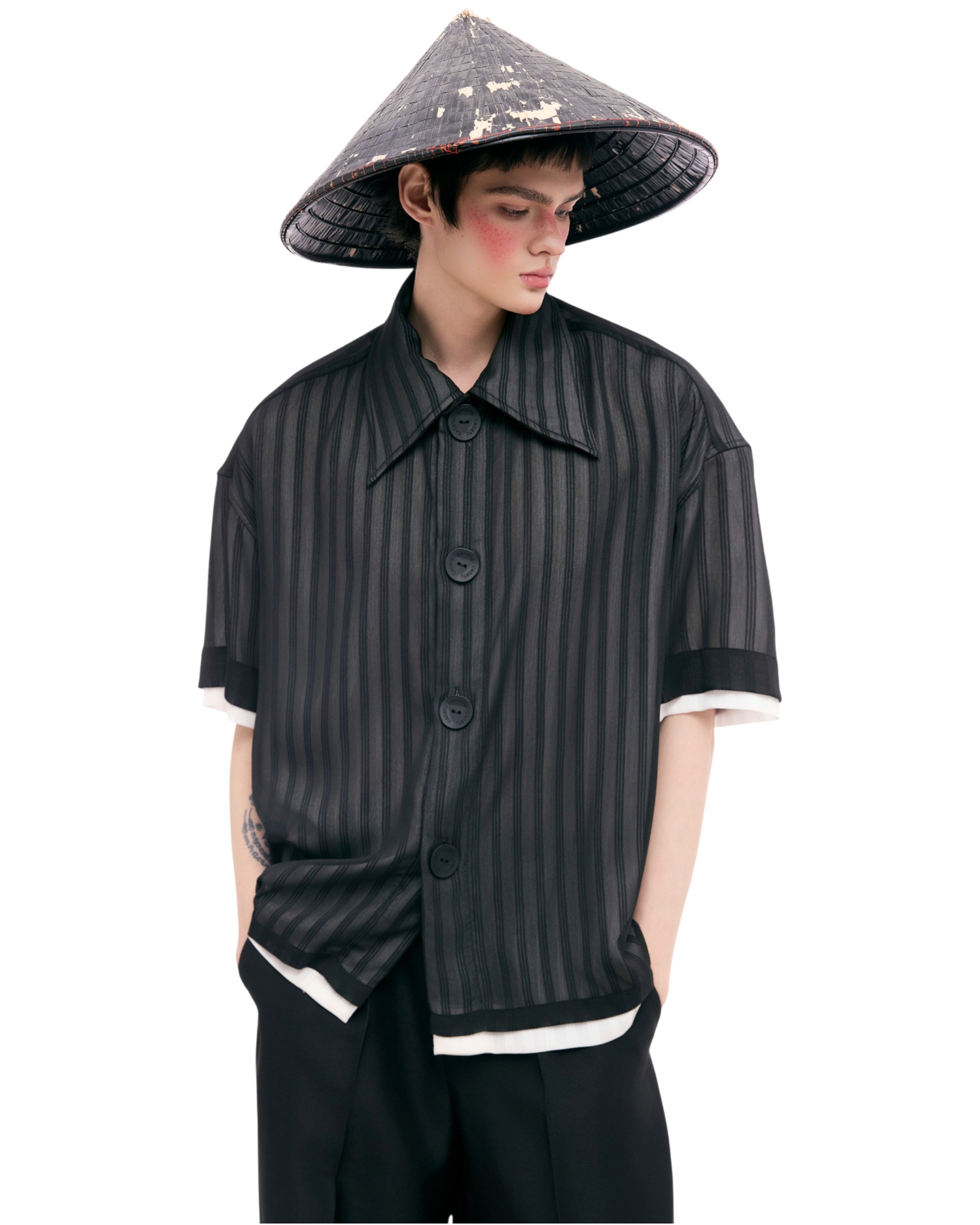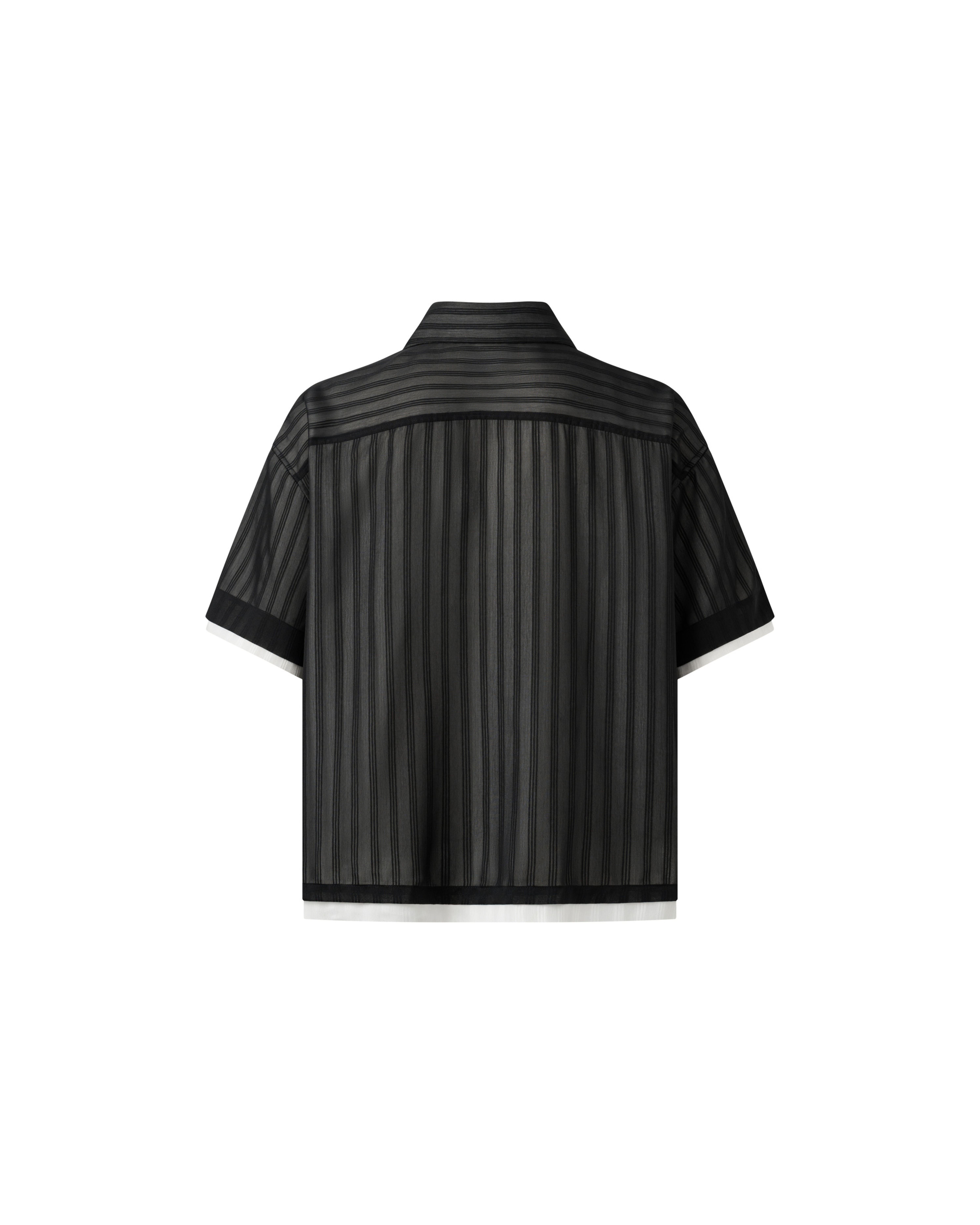- Crafted from breathable, sheer chiffon fabric with vertical stripes